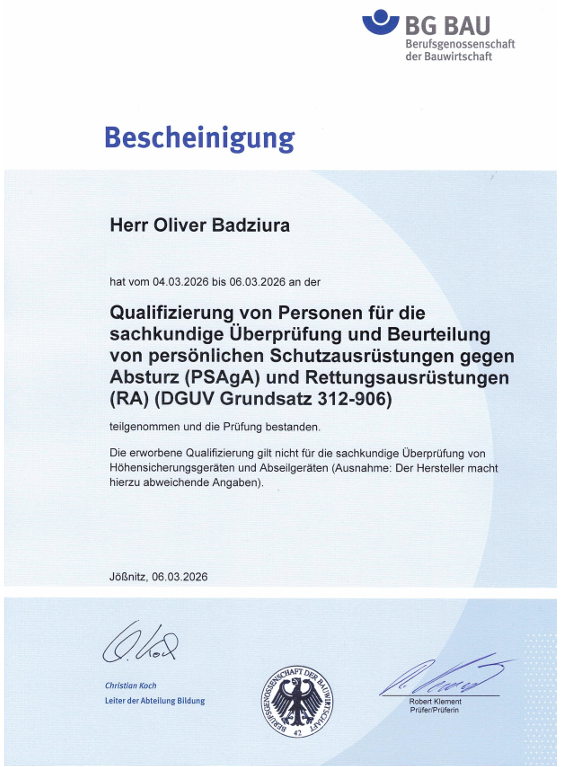 - Sachkundiger nach DGUV Grundsatz 312-906